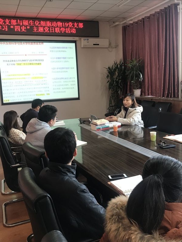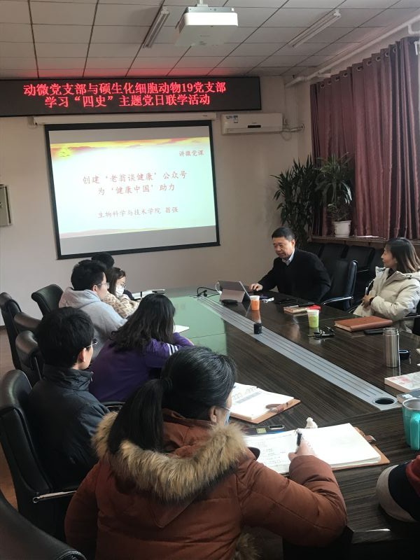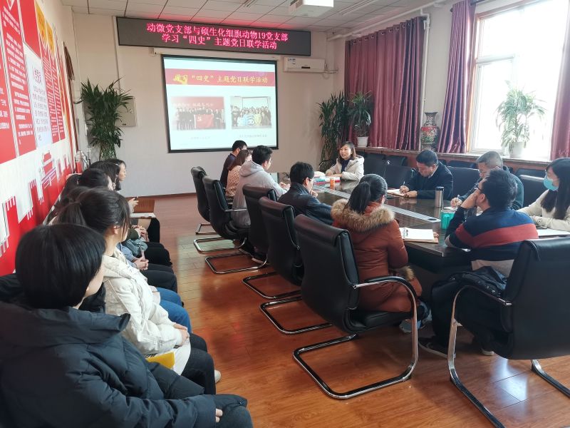12月11日,生物学院教工动微党支部联合硕生化细胞动物19党支部开展组织学习“四史”主题党日联学活动。动微党支部及硕生化细胞动物19党支部全体党员参加,会议由动微党支部书记何晓青老师主持。