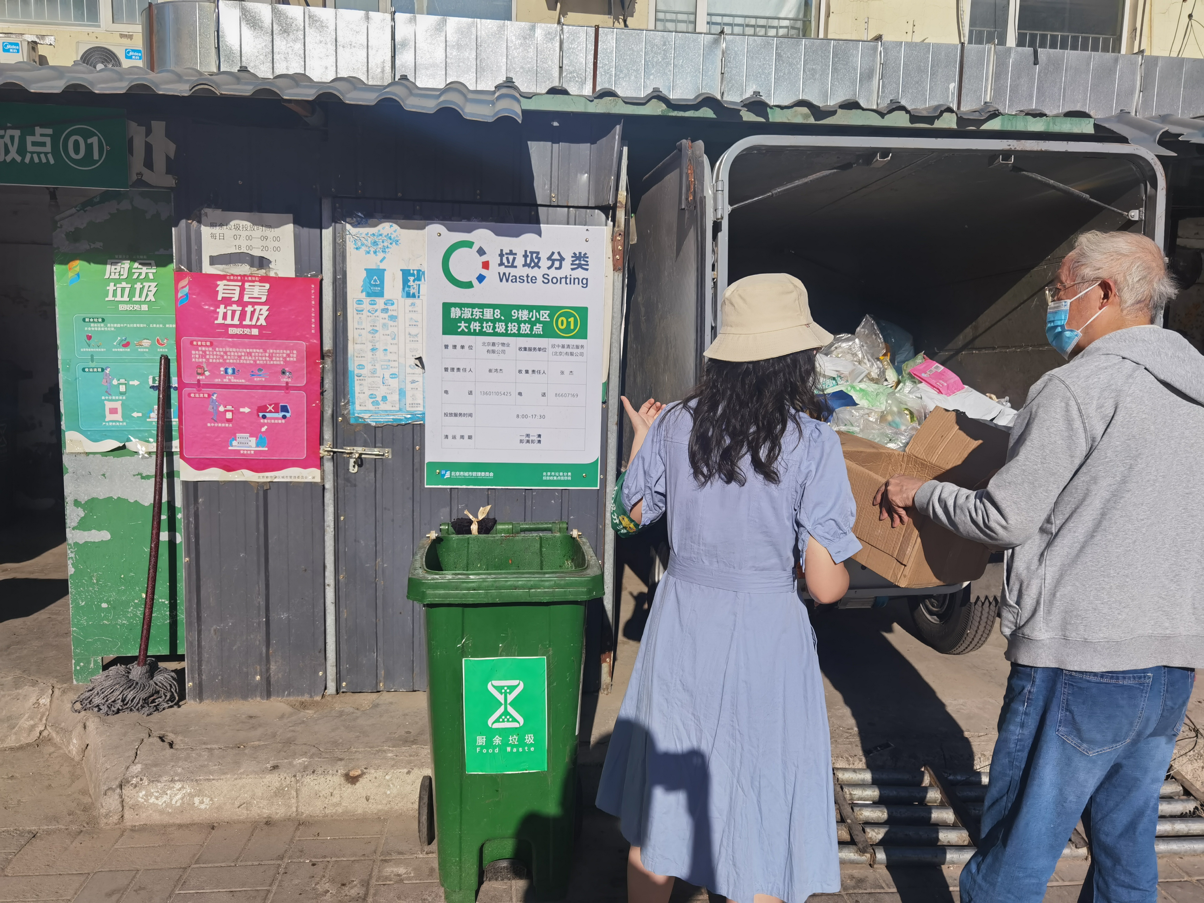 5月29日下午,两个学生党支部共计14名党员、积极分子顺利与学院路街道六道口社区委员会负责人聂茜碰面,活动伊始,聂茜同志先向同学们介绍了六道口社区辖区内垃圾分类的情况及小区垃圾分类的主要工作内容。接着聂同志发放了“垃圾分类志愿者”袖章,带领党员们以小组形式分站点进行值守。她谈到目前居民对垃圾分类已经有了较高意识,居民区垃圾分类投放主要是厨余垃圾和其他垃圾,可以引导大家正确投放,以减少后续工作量。