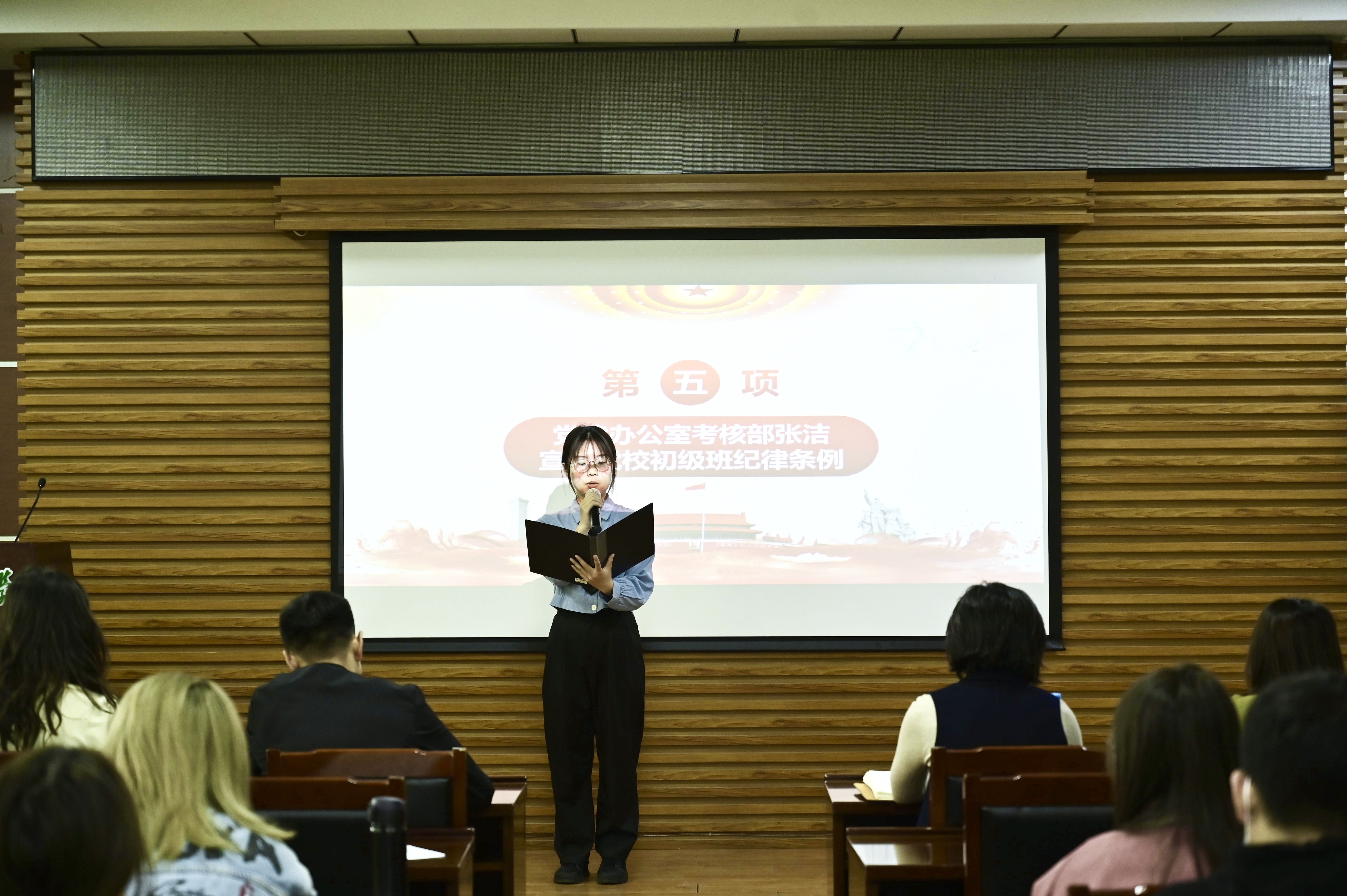 郭明嘉老师为初级班学员们详细介绍了生物学院业余党校初级班的培训内容、工作日历以及入党流程;党建办公室考核部张洁为学员们宣读了初级班的纪律管理条例,帮助学员明确管理规定,强调了党校初级班的严肃性和纪律性。